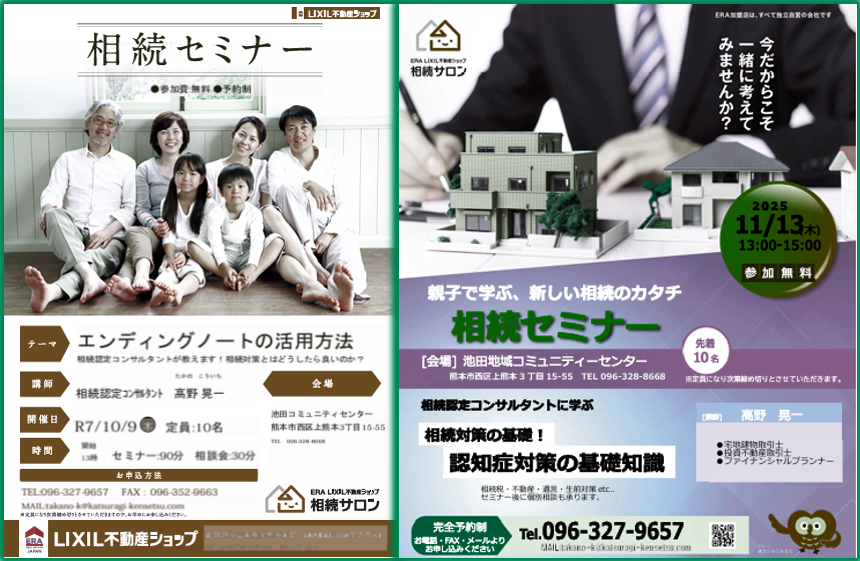 トップページ 次回の相続対策セミナーは 10月9日(木)「エンディングノートの活用方法」、11月13日(木)「認知症対策の基礎知識」を13時~15時 池田コミュニティセンターで開催します(詳細は → をクリックしてください) News 新着情報 CATEGORY お知らせその他イベント進捗状況 次回の相続対策セミナーは 10月9日(木)「エンディングノートの活用方法」、11月13日(木)「認知症対策の基礎知識」を13時~15時 池田コミュニティセンターで開催します(詳細は → をクリックしてください) 2025.10.07 イベント ご質問がありましたら下記お問い合わせからご連絡いただきますようお願い申し上げます。 前の記事へ Other Contentsその他のコンテンツ 企業情報 建設事業部 開発事業部